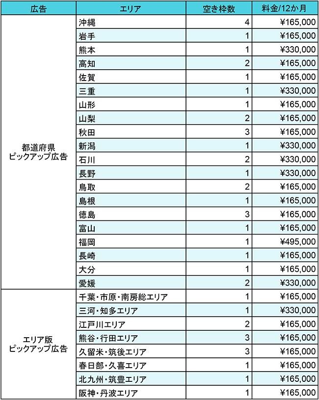 また、都道府県・エリア版以外のピックアップ広告も、